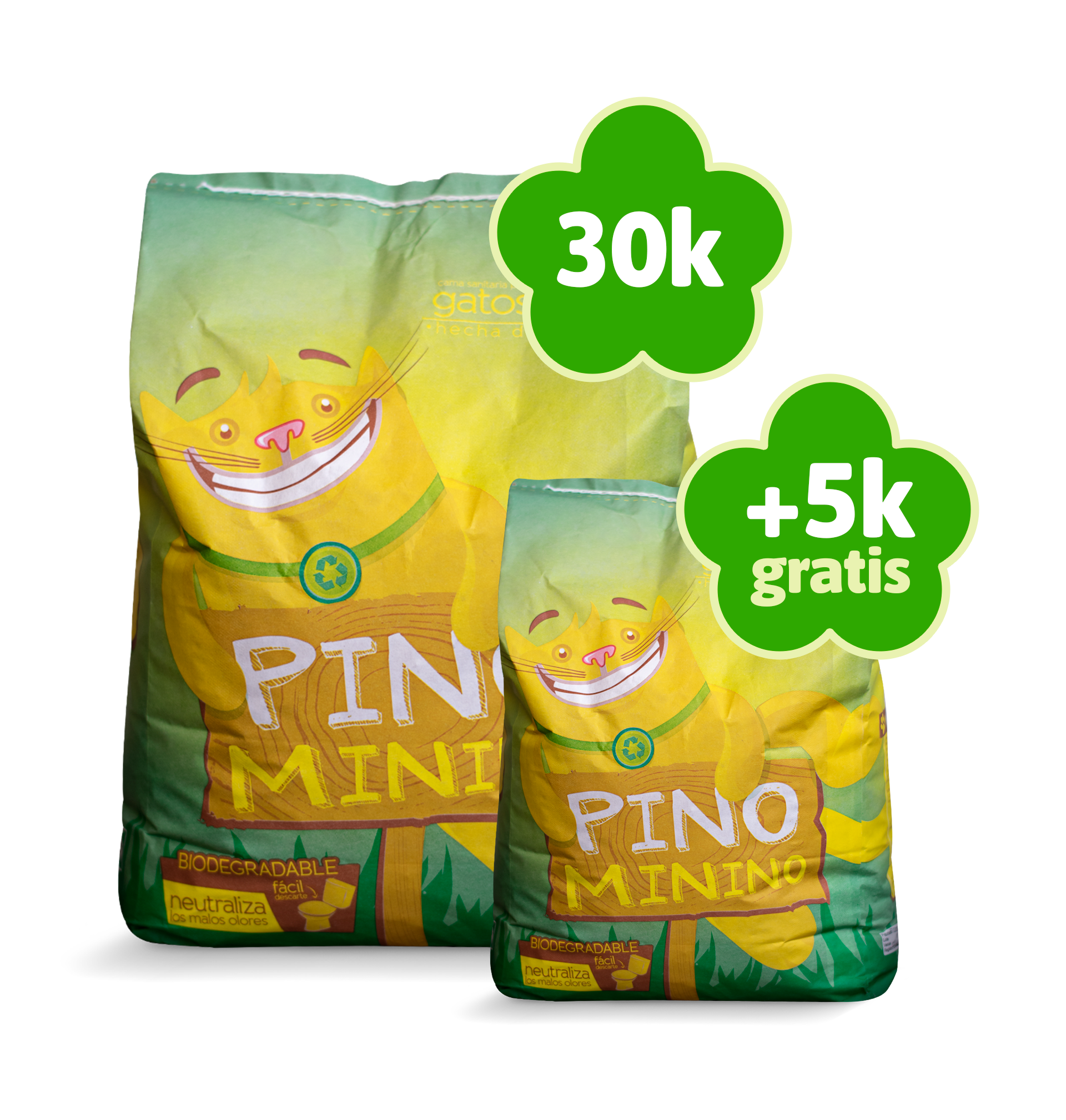 Cada 100gr de cama sanitaria Pino Minino contienen 100gr de viruta de pino.